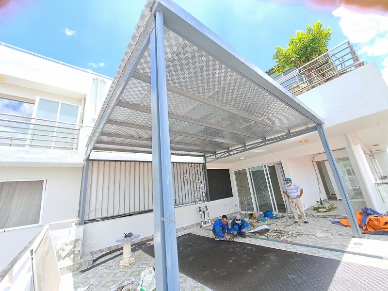 - Thử nước & Bàn giao: Phun nước áp lực cao để kiểm tra độ kín khít của mái hiên trước khi nghiệm thu.
