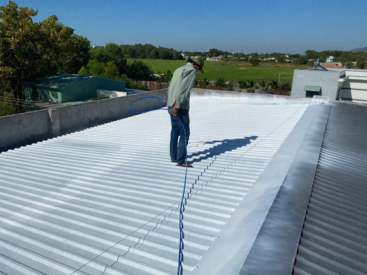Thi công Sơn Hoàn thiện Chống Mốc: Sơn 2-3 lớp sơn chống rêu mốc (hoặc sơn chống nóng) theo định mức, đảm bảo độ dày màng sơn đạt chuẩn để tối ưu hóa hiệu quả bảo vệ.
